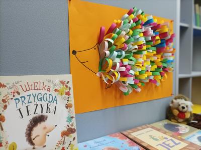 W ramach wydarzenia dzieciom przeczytano opowiadanie Wielka przygoda Jeżyka Jennie Poh. Następnie przybliżono sylwetkę ssaka - gdzie mieszka, co lubi jeść, jaki tryb życia prowadzi. Na zakończenie wykonano wspólną pracę - zaangażowały się w nią wszystkie grupy przedszkolne. Praca czeka jednak na dokończenie - zapraszamy do biblioteki i doklejenia własnego kolca. Efekty pracy zostaną zamieszczone po jej ukończeniu.