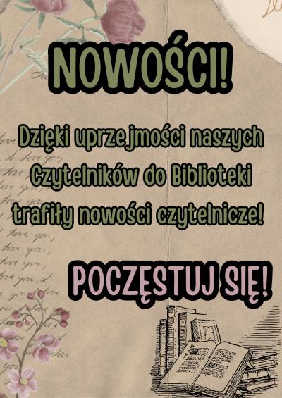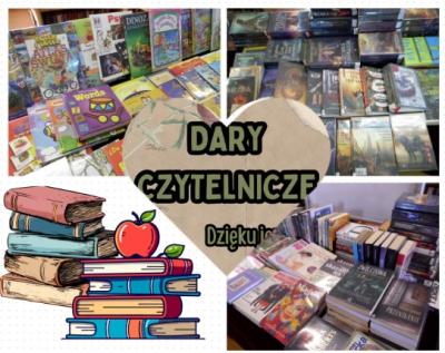 Serdecznie dziękujemy za ogromną ilość darów (około 300 pozycji - a dary wciąż napływają /oby tak dalej!/), wśród których znalazły się perełki i nowości książkowe. Zapraszamy do wypożyczania, a także do wspierania Biblioteki darami czytelniczymi.